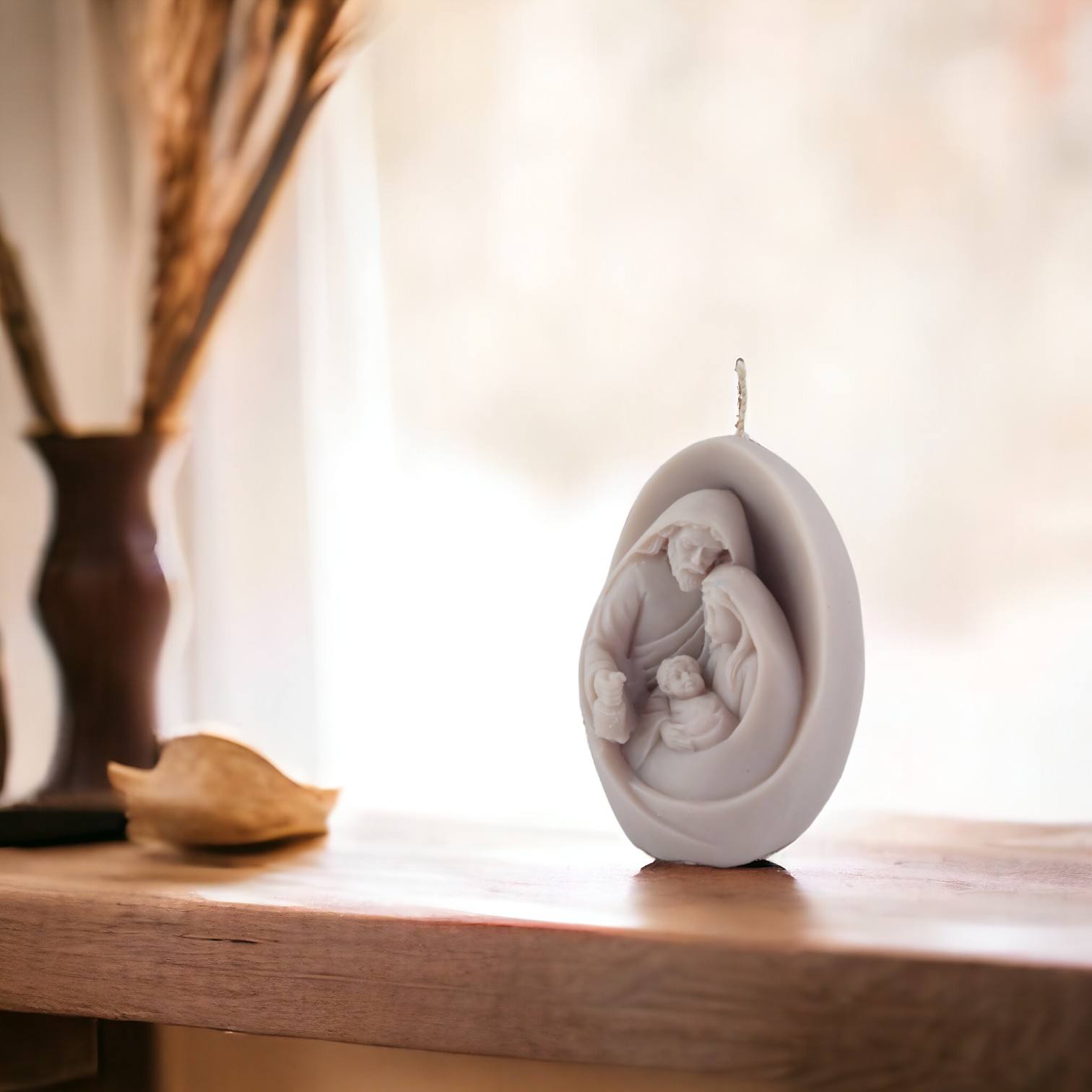 Lumanare decorativa parfumata Ou de Paste Sfanta Familie, gri